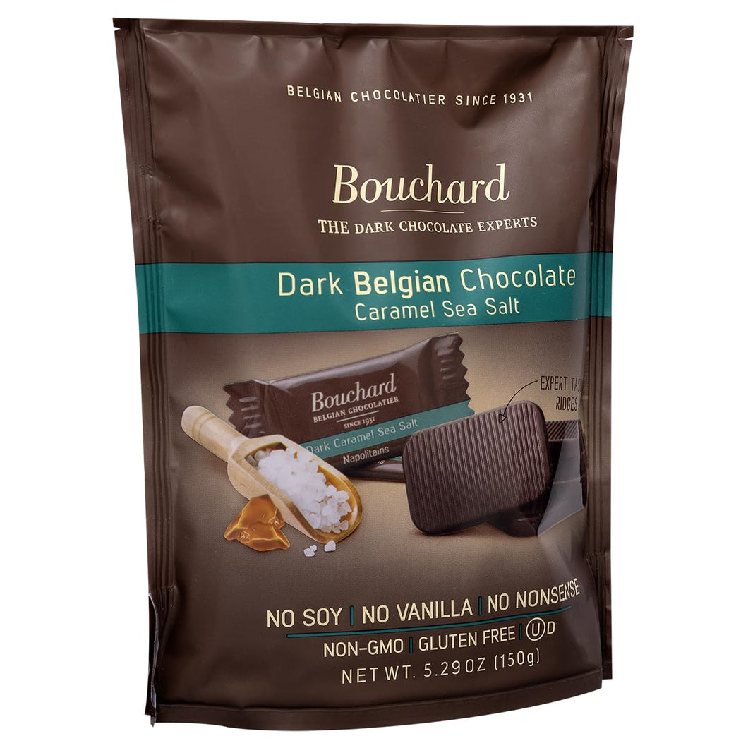 Bouchard Premium Dark Belgian Chocolates Caramel Sea Salt are made in Belgium and give you the traditional Belgian taste that we all love. Use only the finest of assorted ingredients and make sure that the products offer only what's best for you and your body. Made with real, quality ingredients, no soy or vanilla. It is kosher, non-GMO, gluten-free, alkali-free.