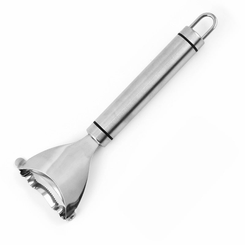 Transform your corn preparation with this efficient stainless steel corn stripper tool. The ergonomic design features a curved blade that perfectly follows the contour of your corn cob, making kernel removal quick and effortless. Simply slide the tool along the cob, and watch as it cleanly separates kernels in seconds, saving you valuable prep time in the kitchen. The durable stainless steel construction ensures long-lasting performance and easy cleaning. This versatile kitchen gadget is perfect for preparing fresh corn for salads, soups, casseroles, or freezing for later use. The comfortable handle provides a secure grip while stripping, making it safe and easy to use. Whether you're preparing corn for a family dinner or processing a large harvest, this corn peeler streamlines the process with professional-grade results. Keep this handy tool in your kitchen drawer for whenever you need perfectly removed corn kernels without the hassle of manual cutting.