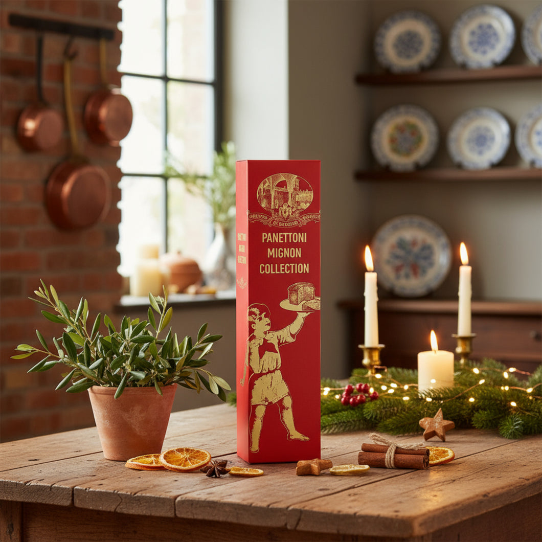 A wonderful gift for the holidays! Five 100-gram MINI assorted panettone in one gift box! Included in this tower gift box are: