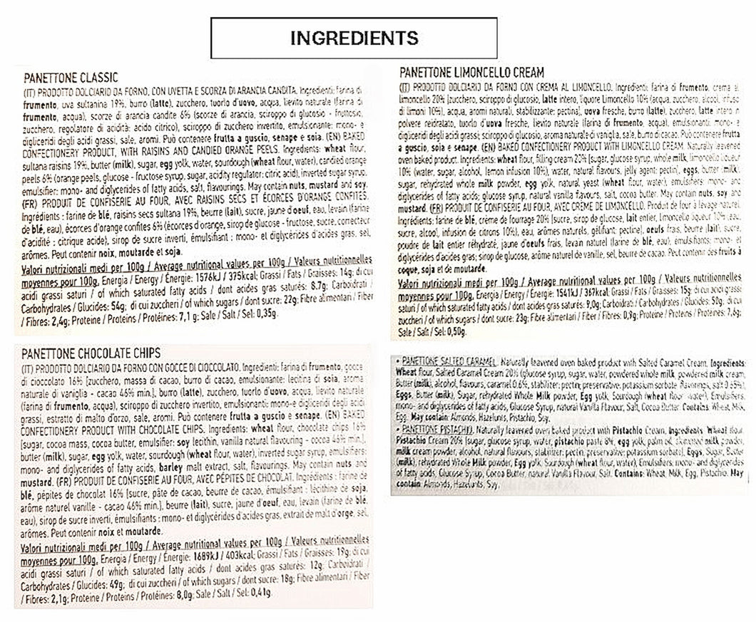 According to the traditional recipe, it is produced through slow natural leavening, and all the ingredients, from flour to milk, from eggs to butter, and from candied fruit to yeast, are of natural origin, fresh, and genuine.