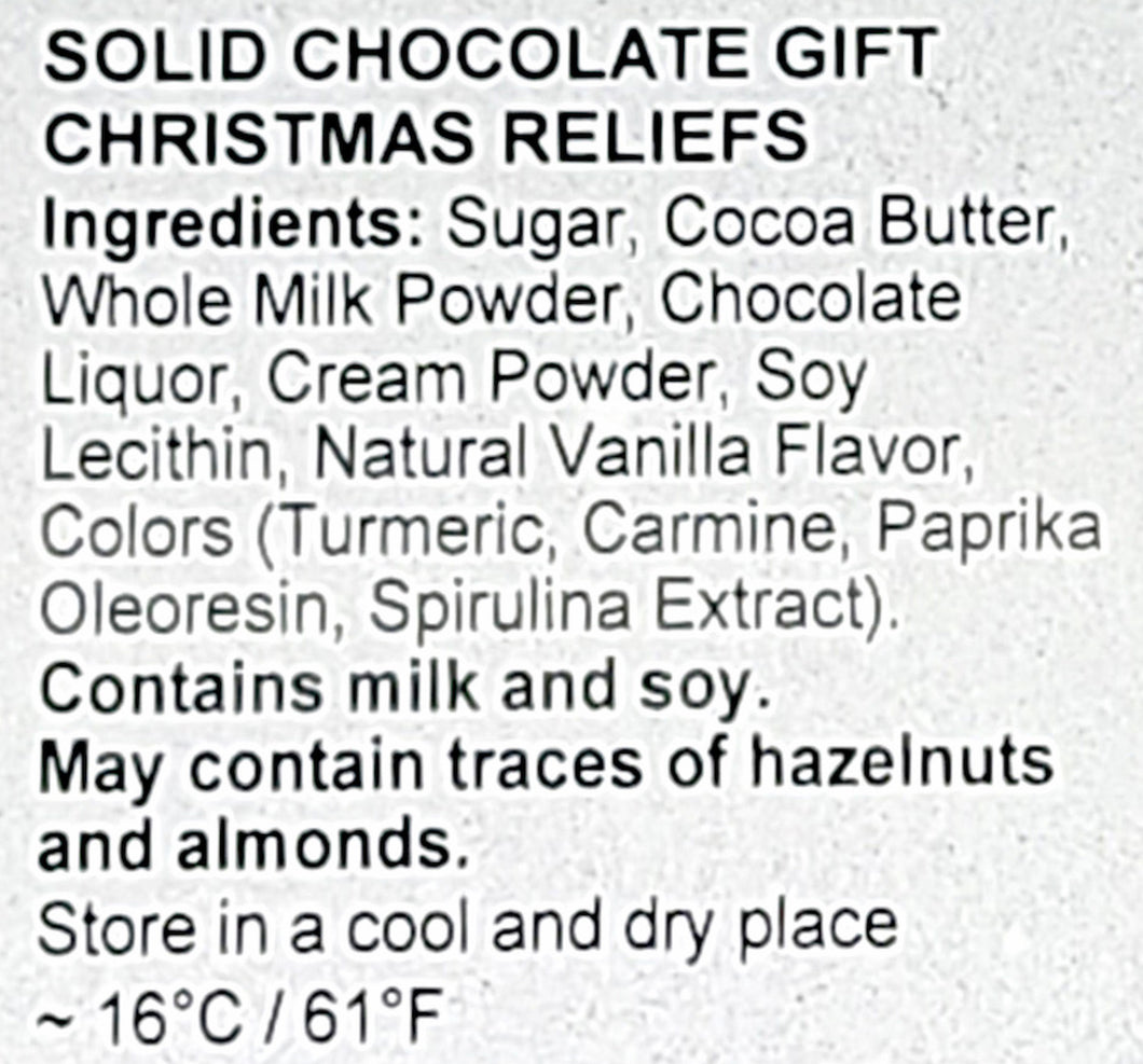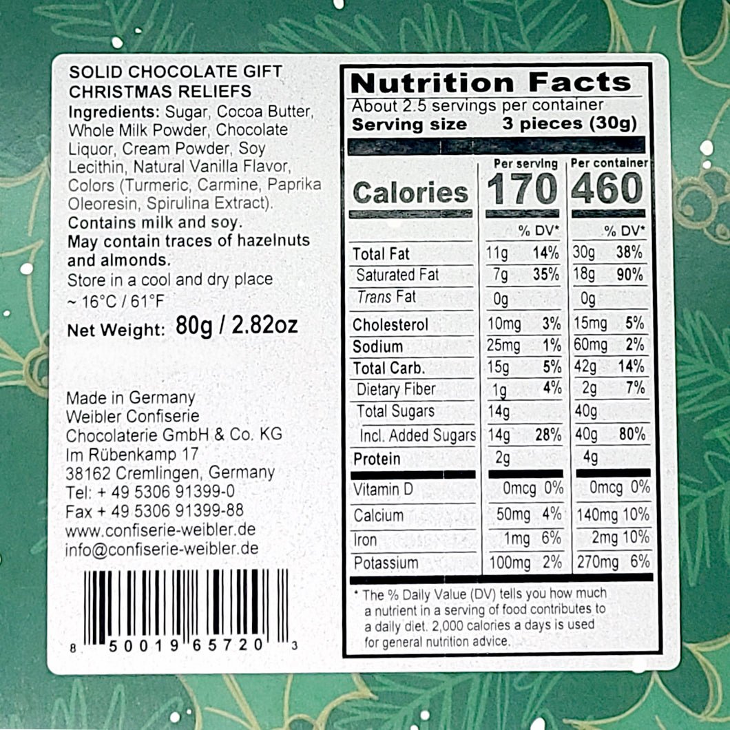 Weibler Solid Chocolate Christmas Releifs Gift Box 2.82 Oz (80 g.)