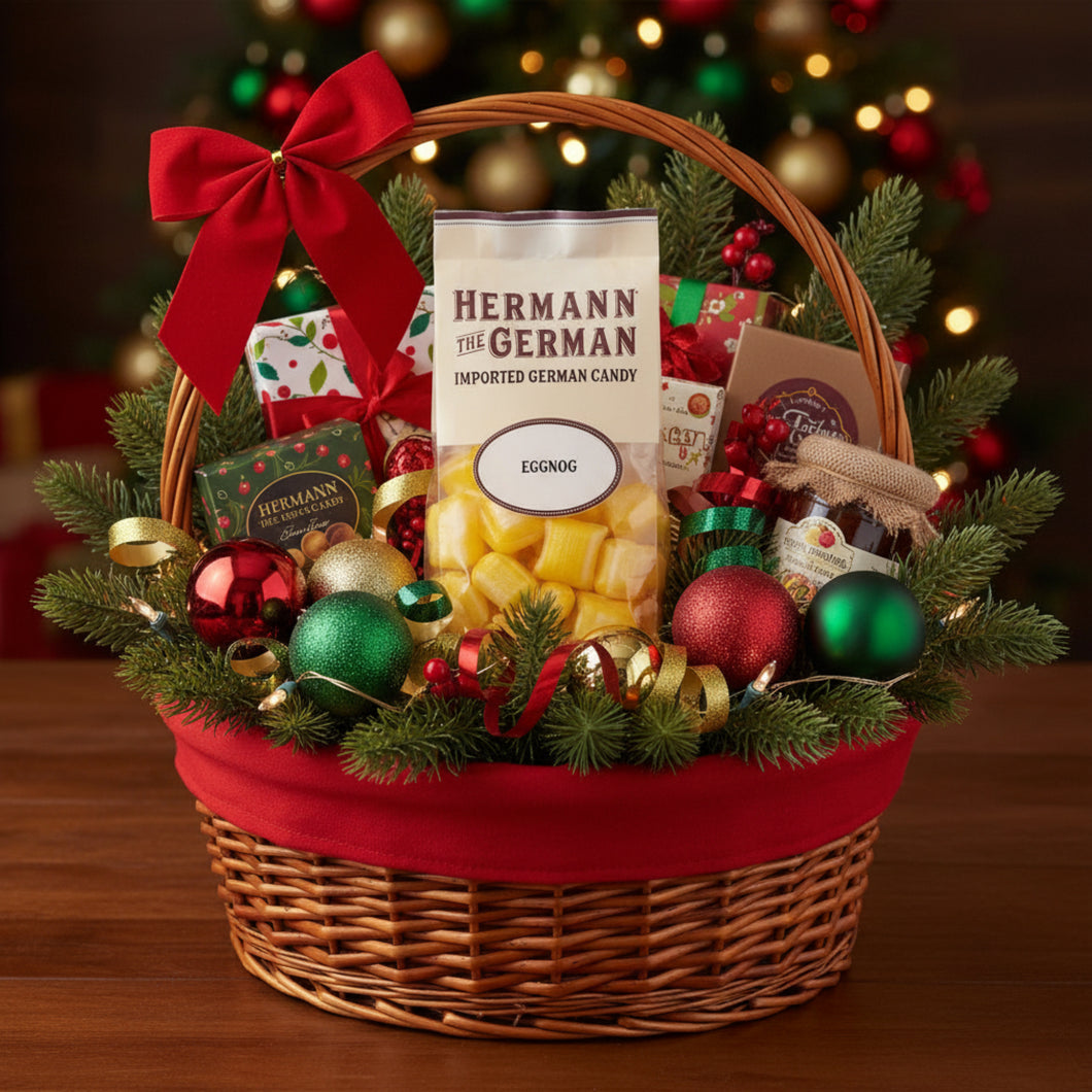 Hermann the German is a classic old-fashioned hard candy molded into various shapes. Celebrate your holidays with Hermann the German's popular holiday flavor, Eggnog! They are made with natural extracts, flavorings, and colorings from natural flavors, in a pillow shape. Red color is from carrot concentrate. They are great anytime, as they are not overwhelmingly sweet and also make a good stocking stuffer for the holidays.