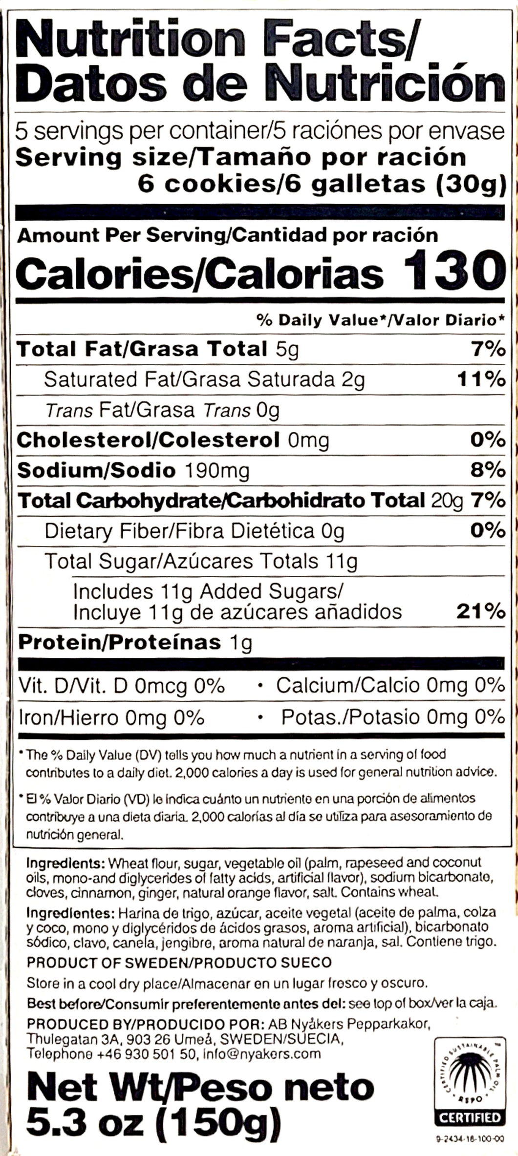 Nyakers' original gingersnap cookies or pepparkakor in Swedish are made by the oldest gingerbread bakery in Sweden from a traditional recipe that was perfected in the 1950s.