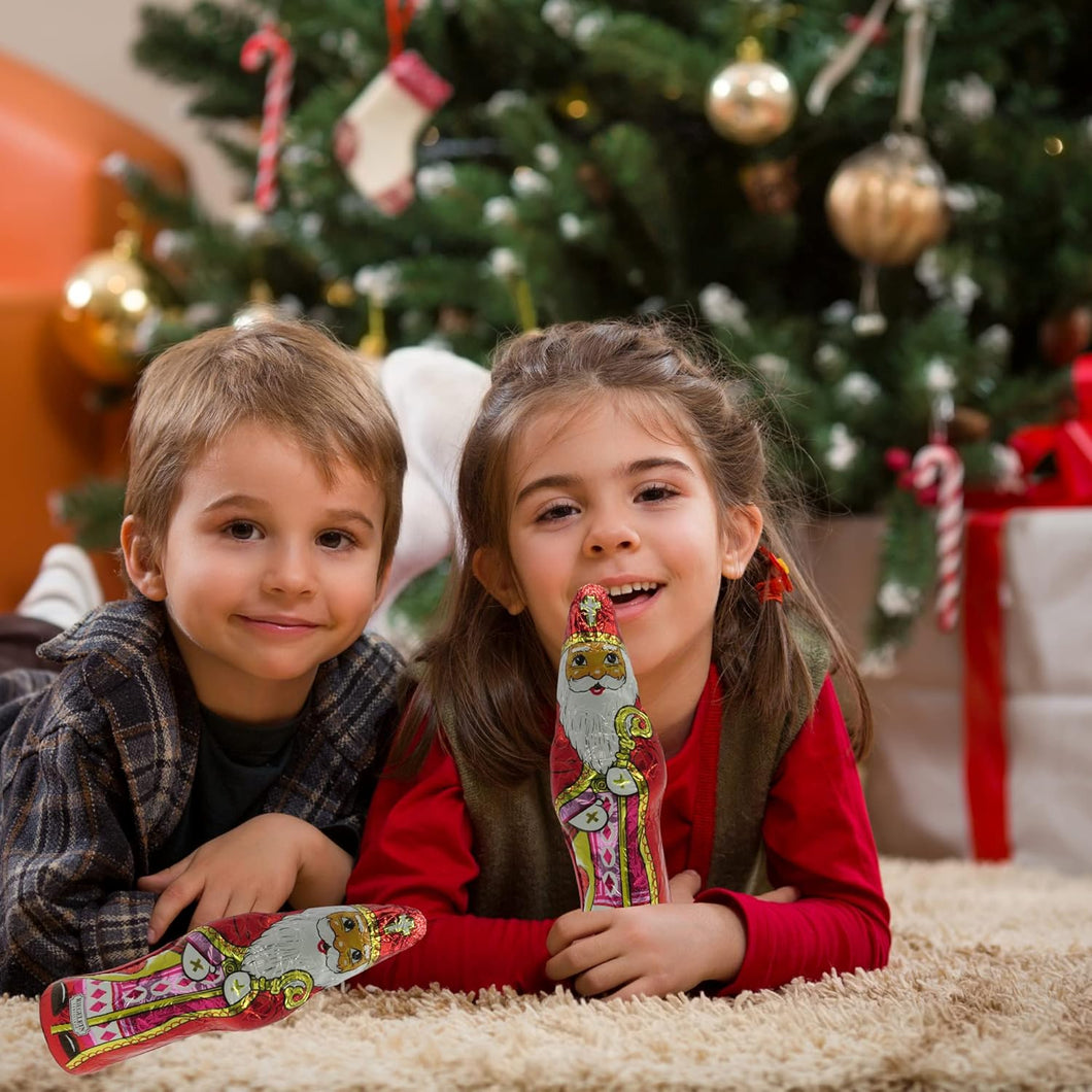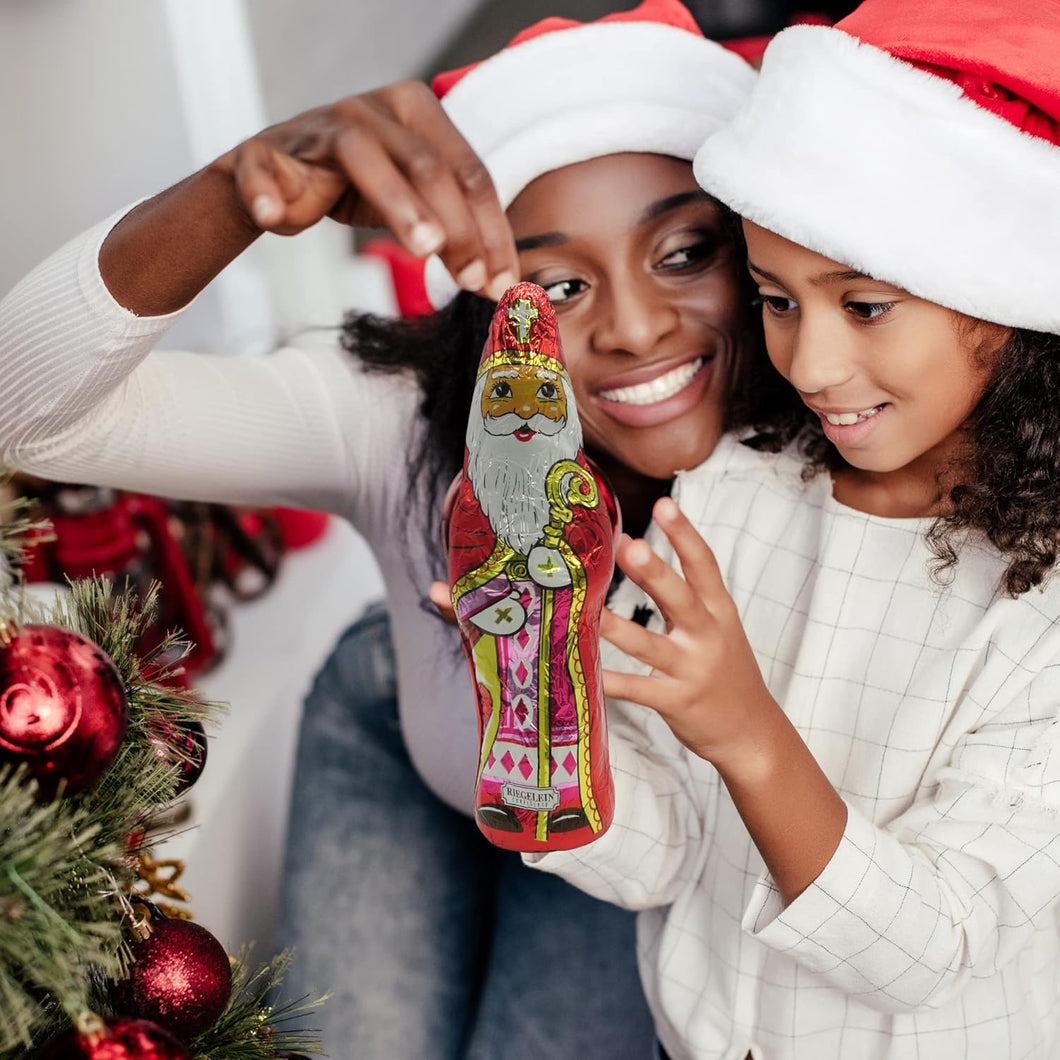 Riegelein Confiserie is one of Europe’s leading chocolate brands, founded in 1953. Reigelein's St. Nicholas figure is made of 30% German fine chocolate Fair Trade, and high-quality ingredients. It is hollow chocolate.