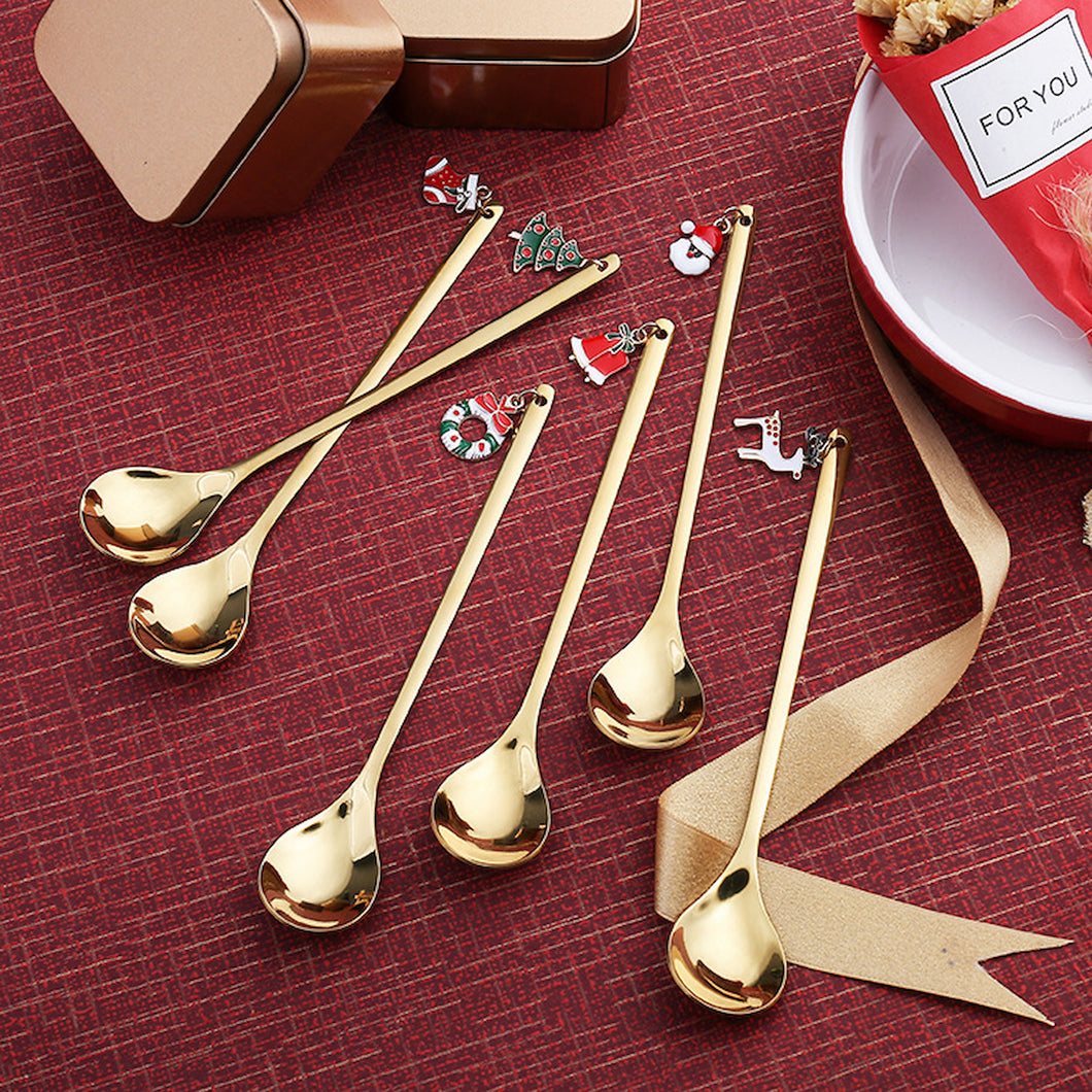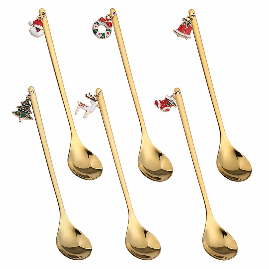 6-Piece Christmas Pendant Gold Stainless Steel Coffee/Tea/Dessert Spoon Gift Set