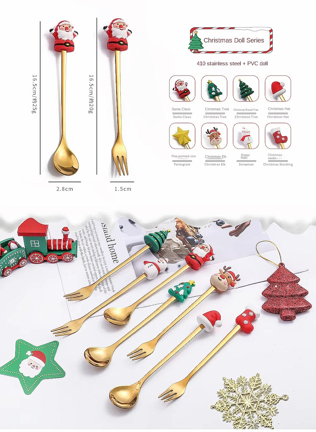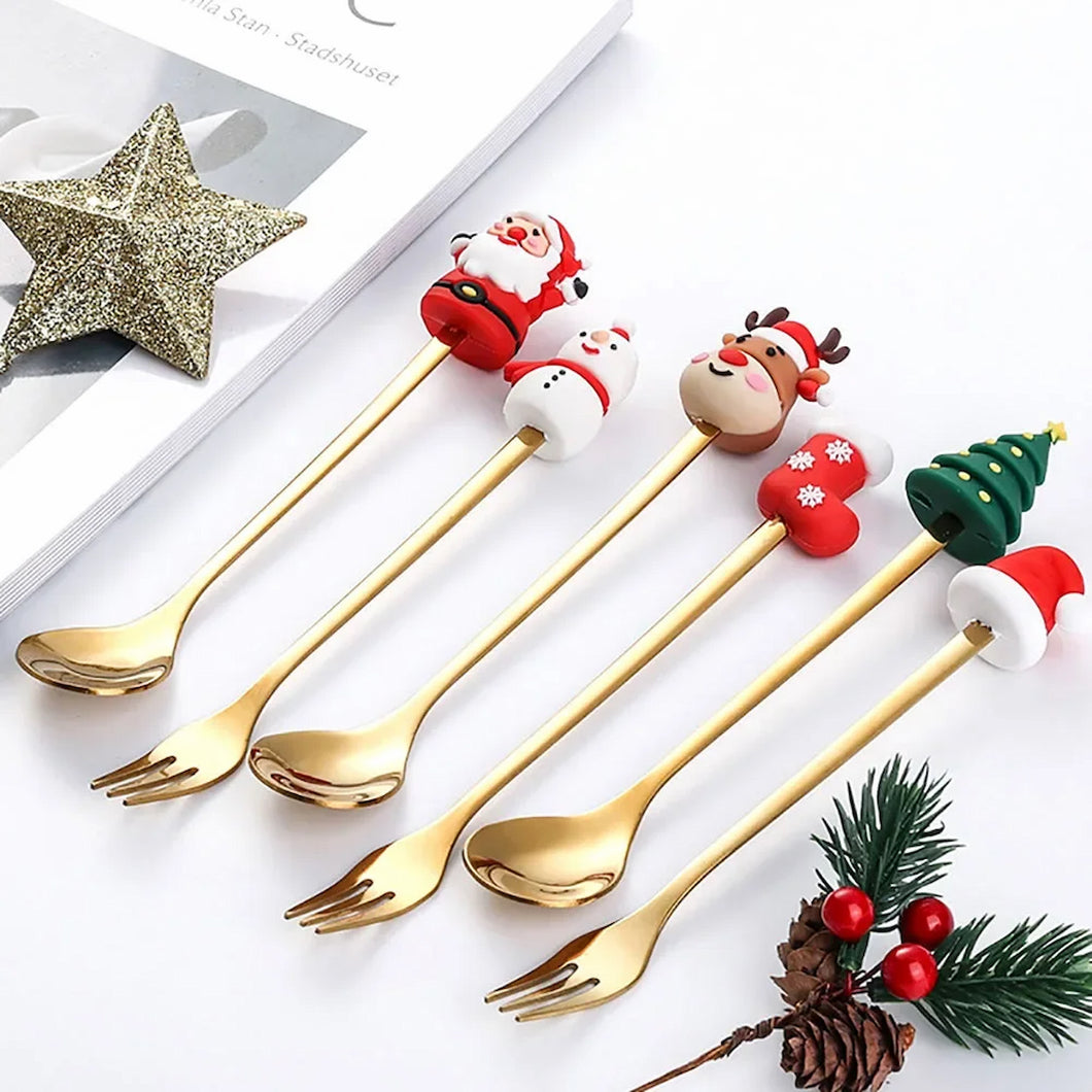6-Piece Christmas Theme Cartoon Style Gold Stainless Steel Spoon Gift Set