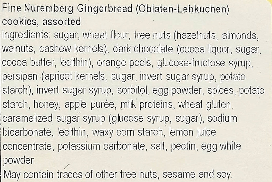 - Chocolate Gingerbread Oblaten-Lebkuchen with spices, nuts, and chocolate coating